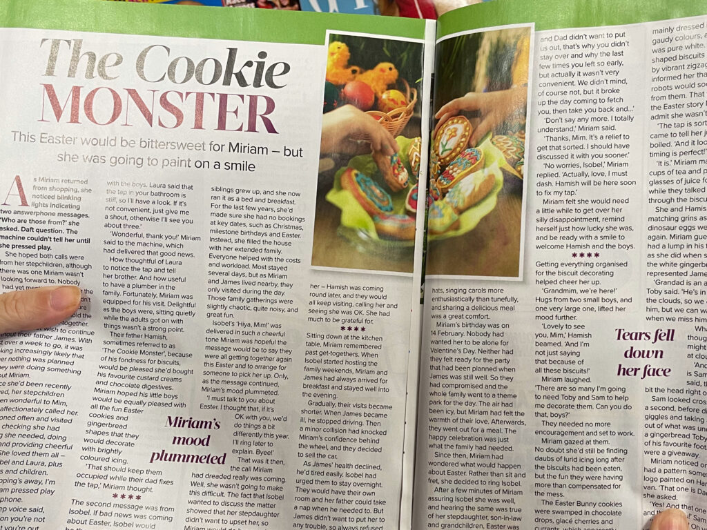 I’m very pleased to have a story in the current issue of Woman’s Weekly. Just to prove I don’t have a one track mind, this one is all about biscuits – not cake. However…